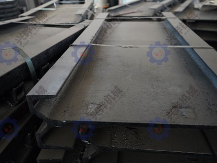 傳統(tǒng)中部槽的中板對接后表面的平面度有較大誤差,增大了刮板運行阻力,加速了中板的非正常磨損。運行時中部槽會出現(xiàn)上下起伏角度,易使搭接板損壞。同時,鑄造擋板槽幫上支撐鍛造軌座的彎聯(lián)接板,也存在聯(lián)接強度較低,中部槽使用壽命短的問題。