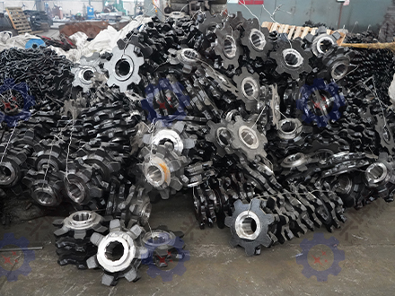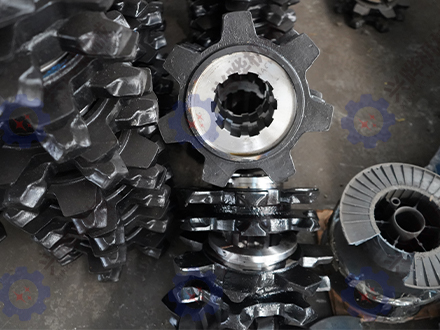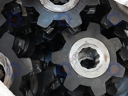 刮板機(jī)鏈輪的材質(zhì)大多采用42CrMo或45CrMnMo材質(zhì),鏈輪采用鍛打和淬火等工藝,以提高鏈輪的耐磨性,首先要求鍛件表面不得有裂紋、夾層、褶皺、鍛傷、夾渣,經(jīng)過二十道工序加工成形后投入機(jī)頭機(jī)尾部分工作。