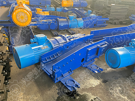 刮板輸送機(jī)的工作原理是將敞開的溜槽,做為煤碳、矸石或物料等的承受件,將刮板固定在傳動(dòng)鏈條上(組成刮板鏈),做為牽引構(gòu)件。礦用40T刮板輸送機(jī)當(dāng)機(jī)頭傳動(dòng)部啟動(dòng)后,帶動(dòng)機(jī)頭軸上的鏈輪旋轉(zhuǎn),使刮板鏈循環(huán)運(yùn)行帶動(dòng)物料沿著溜槽移動(dòng),直至到機(jī)頭部卸載。刮板鏈繞過鏈輪作無級(jí)閉合循環(huán)運(yùn)行,完成物料的輸送。