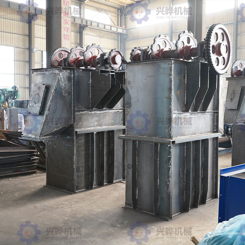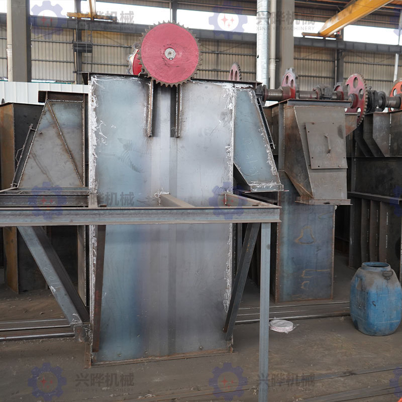 2、重力式卸料的斗速較慢,適用于輸送塊狀的,比重較大的,磨琢性大的物料,如石灰石、熟料等。斗式提升機的牽引構件有環(huán)鏈、板鏈和膠帶等幾種。環(huán)鏈的結構和制造比較簡單,與料斗的連接也很牢固,輸送磨琢性大的物料時,鏈條的磨損較小,但其自重較大。板鏈結構比較牢固,自重較輕,適用于提升量大的提升機,但鉸接接頭易被磨損,膠帶的結構比較簡單,但不適宜輸送磨琢性大的物料,普通膠帶物料溫度不超過60攝氏度,夾鋼繩膠帶允許物料溫度達80攝氏度,耐熱膠帶允許物料溫度達120攝氏度,環(huán)鏈、板鏈輸送物料的溫度可達250攝氏度。