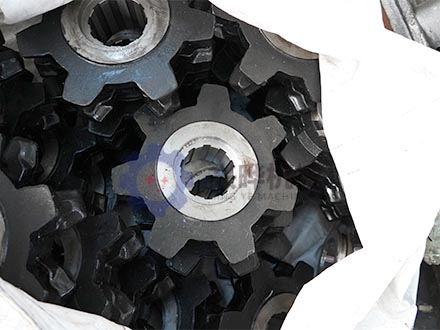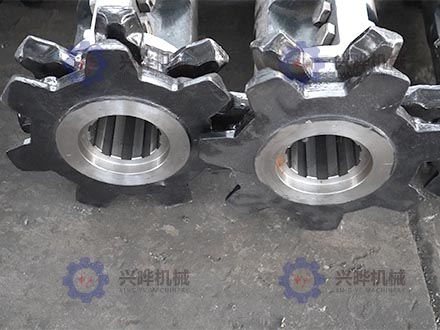 刮板機(jī)鏈輪強(qiáng)度高,耐磨,能承受脈動組合,沖擊載荷,并具有一定的韌性;齒形尺寸參數(shù)設(shè)計準(zhǔn)確,加工精度高,保證于鏈條進(jìn)行良好的切合。