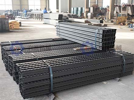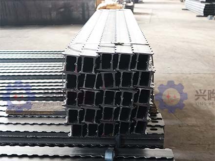 2、金屬頂梁接頭焊在與左、右耳子相對(duì)的梁體另一端,接頭有一個(gè)楔孔和銷孔,楔孔位于銷孔的一側(cè),接頭的下端不呈突出狀,為平面;