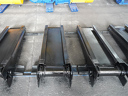 刮板機(jī)輸送機(jī)的結(jié)構(gòu)主要可以分為三個(gè)部分,分別是機(jī)頭部分,機(jī)尾部分和機(jī)身部分。刮板輸送機(jī)機(jī)尾部分結(jié)構(gòu)簡單,主要由機(jī)尾架、機(jī)尾滾筒等部件組成。簡單牢固的結(jié)構(gòu)使得刮板機(jī)機(jī)尾具有更好的耐磨、抗腐蝕性能,能夠更好的在輸送中發(fā)生作用。
