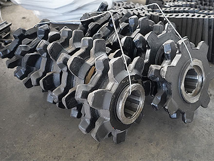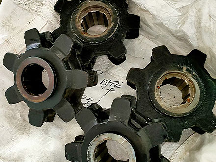 刮板機鏈輪強度高,能承受脈動組合,沖擊載荷,并具有韌性;齒形尺寸參數(shù)設(shè)計確, 鏈條進行良好的切合。