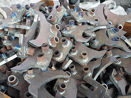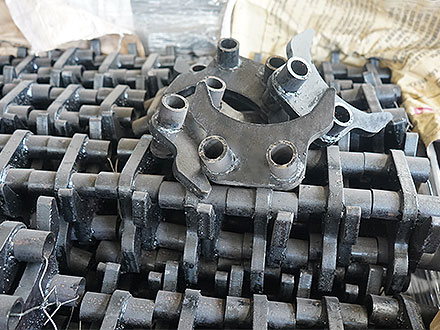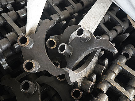 40T分鏈器?是刮板機機頭部分的一個關鍵零部件,其核心作用是確保圓環(huán)鏈在通過鏈輪時能夠順利進入與離開,避免卡死,并及時清除夾在鏈輪槽內的雜物,從而保證鏈輪和刮板鏈的正常嚙合。當上下兩受力磨損部位磨損后,可以通過堆焊方式進行修復,使其再次使用。這種分鏈器在中小煤礦的采礦生產(chǎn)中被廣泛應用,具有體積小、重量輕、可彎曲、運輸量大等優(yōu)點,但同時也存在分鏈器易損、易塞的現(xiàn)象,這在一定程度上影響了其正常使用。