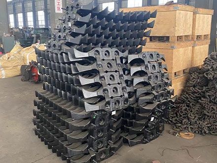 刮板適用于煤礦井下緩傾斜薄煤層及中厚煤層工作面輸送煤炭,安裝檔煤板可用作順槽運(yùn)輸。刮板機(jī)刮板是通過多次淬火模鍛成型,并且是壓條與三個(gè)螺栓一體鍛壓成型,受力程度和抗拉強(qiáng)度高,過煤量大,可以達(dá)到與鏈條與壓板同壽命,在生產(chǎn)中大大增加效益