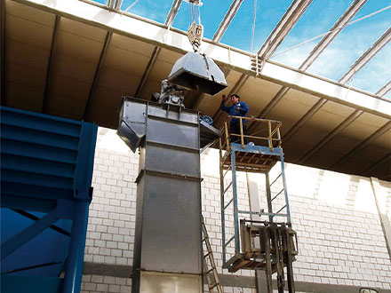 斗式提升機(jī)是利用均勻固接于無端牽引構(gòu)件上的一系列料斗,豎向提升物料的連續(xù)輸送機(jī)械,斗式提升機(jī)利用一系列固接在牽引鏈或膠帶上的料斗在豎直或接近豎直方向內(nèi)向上運(yùn)送散料 。分為環(huán)鏈、板鏈和皮帶三種。