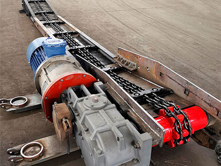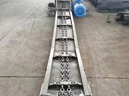 SGB620/40T刮板輸送機(jī)的工作原理是將敞開的溜槽,作為煤炭、矸石或物料等的承受件,將刮板固定在鏈條上(組成刮板鏈),作為牽引構(gòu)件。礦用40T刮板輸送機(jī)當(dāng)機(jī)頭傳動部啟動后,帶動機(jī)頭軸上的鏈輪旋轉(zhuǎn),使刮板鏈循環(huán)運行帶動物料沿著溜槽移動,直至到機(jī)頭部卸載。刮板鏈繞過鏈輪作無級閉合循環(huán)運行,完成物料的輸送。